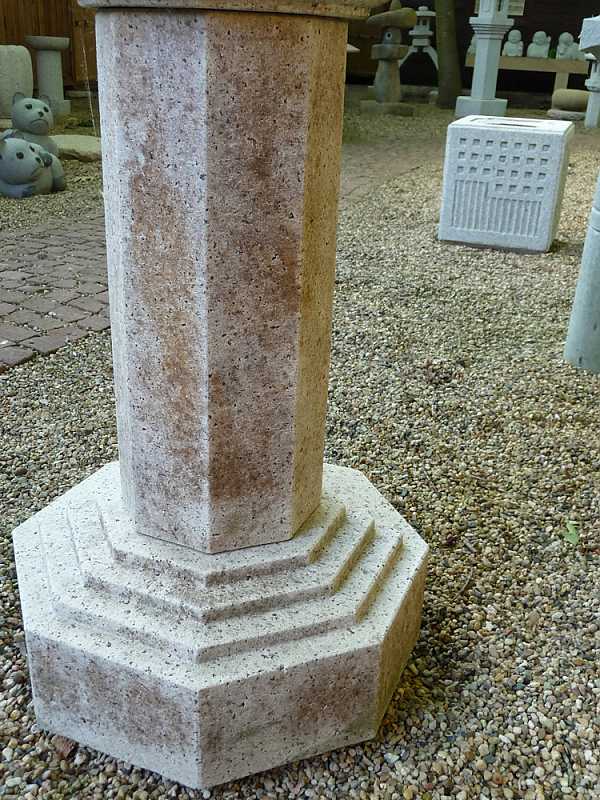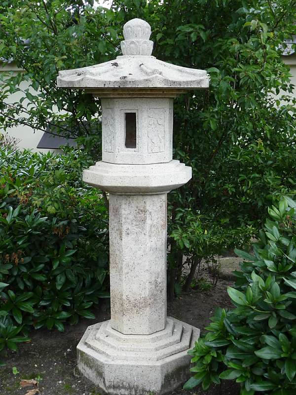 Steinlaternen brauchen Jahre, bis sie das gewünschte, verwitterte Aussehen annehmen. Durch den gelblichen Granit wird diese Laterne mit ihrem Treppensockel und dem interessanten Lichtgehäuse schon nach kurzer Zeit eine wunderschöne Patina entwickeln.