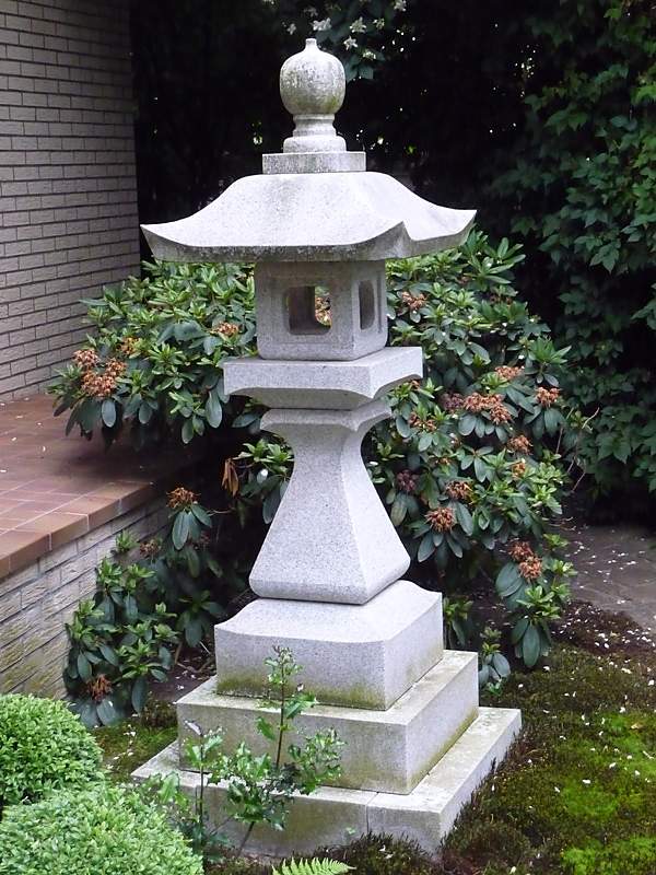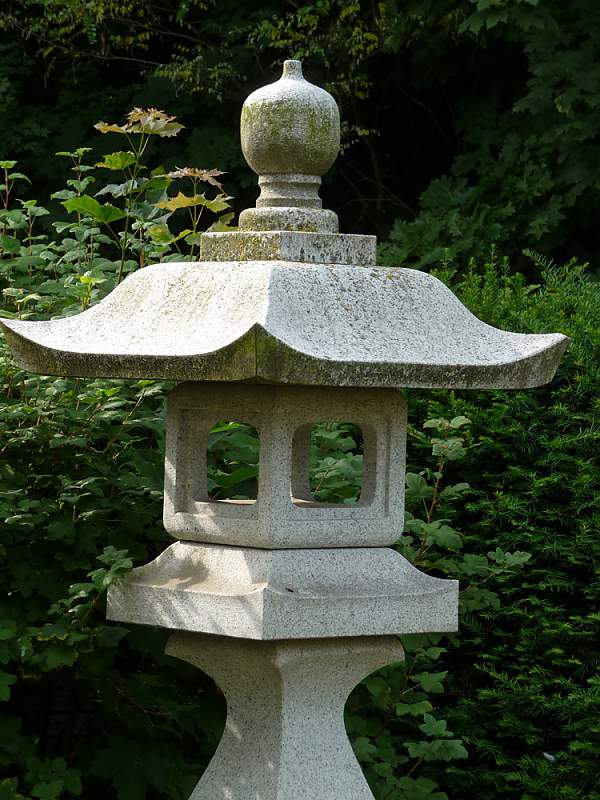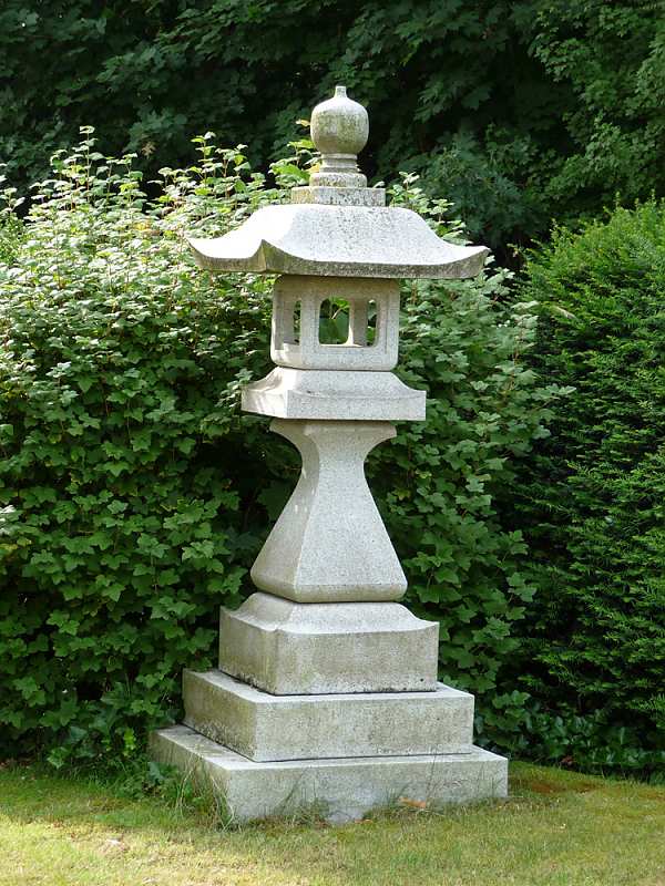 Typisch für den Teegarten sind jene hohen Steinlaternen, die den Zugang zu den großen Shinto-Schreinen säumen. Diese Laterne steht vor dem berühmten Shinto-Schrein in Kyoto und ist eine von unseren vielen Sonderanfertigungen.